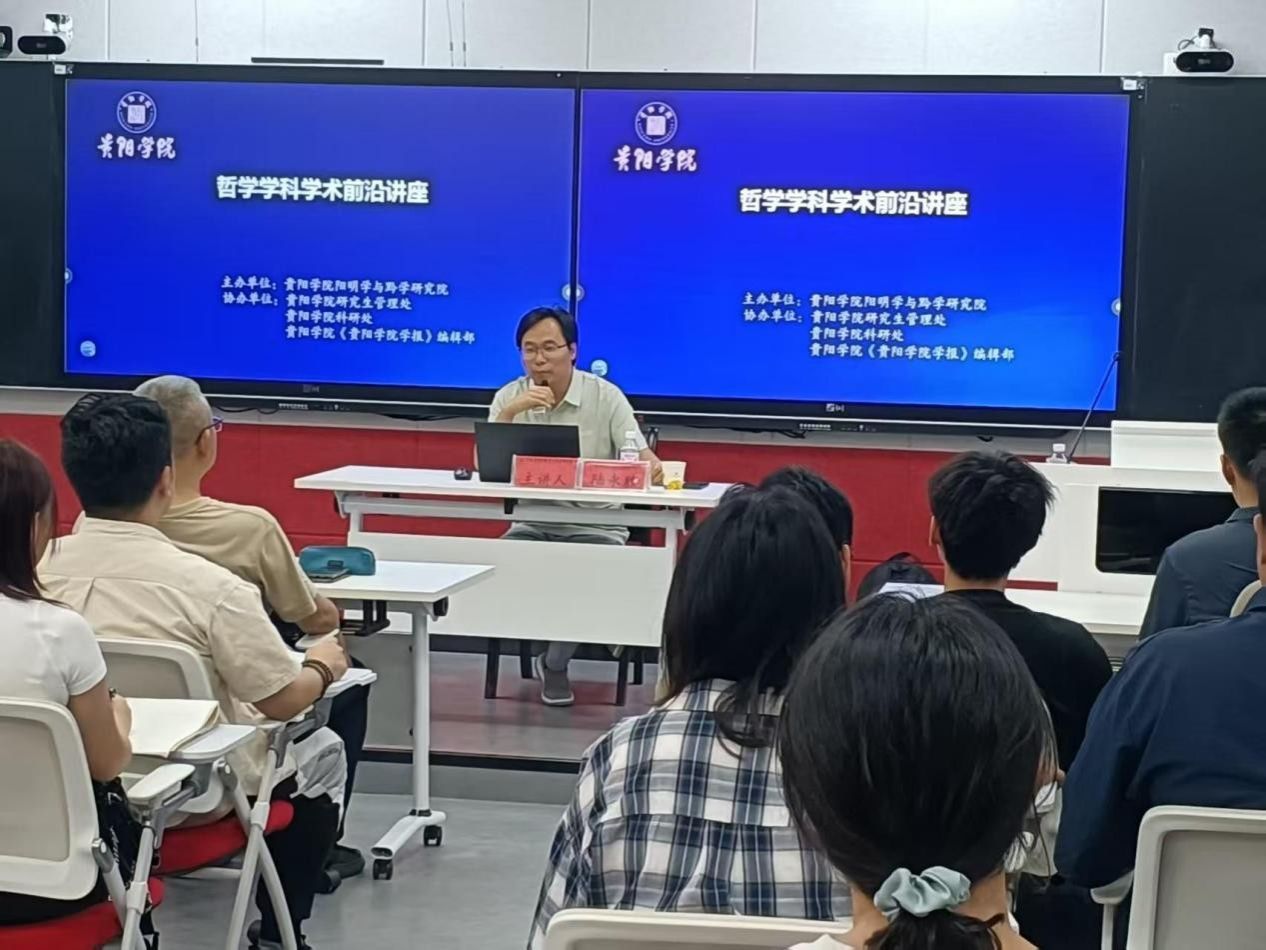 2025年9月12日下午2:30—5:00,阳明学与黔学研究院、科研处、学报编辑部与研究生管理处邀请东南大学马克思主义学院教授、博士生导师、南京大学博士陆永胜教授,在学校博雅楼负1楼VR实训室主讲第四十六讲“鱼梁讲会”讲座。讲座由阳明学与黔学研究院副院长刘继平教授主持,阳明学与黔学研究院师生到场聆听。