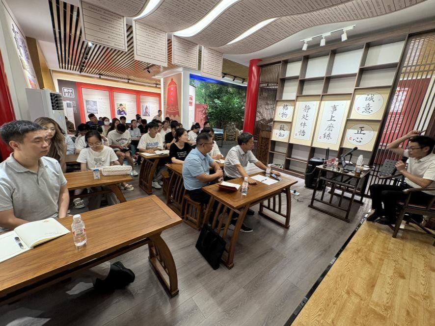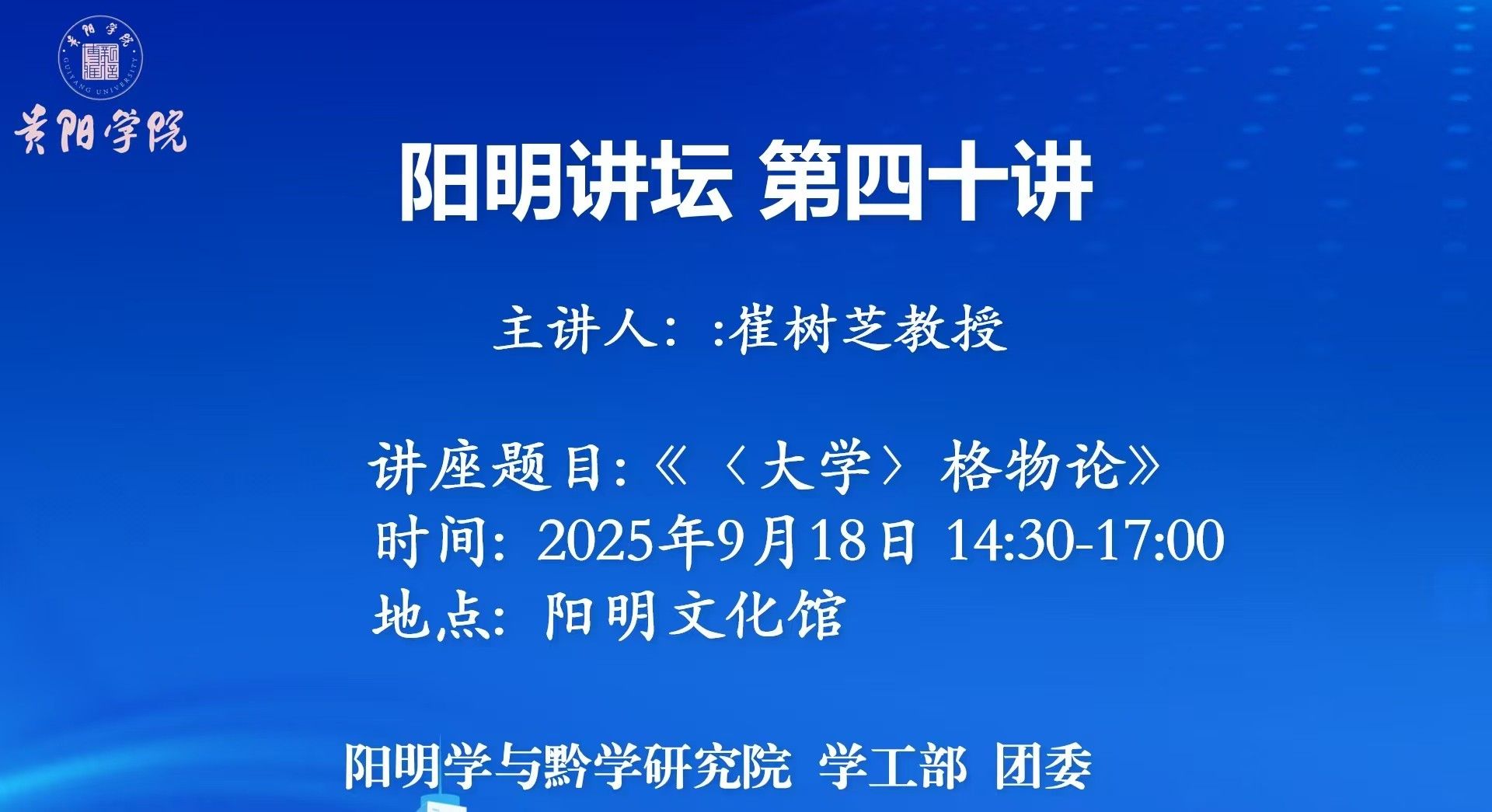 2025年9月18日,受阳明学与黔学研究院邀请,中国人民大学哲学博士,贵州省委党校哲学教研部崔树芝教授在学校阳明文化馆主讲“阳明讲坛”第四十讲,讲座由阳明学与黔学研究院副院长任健教授主持,阳明学与黔学研究院师生、体育学院部分教师到场聆听。