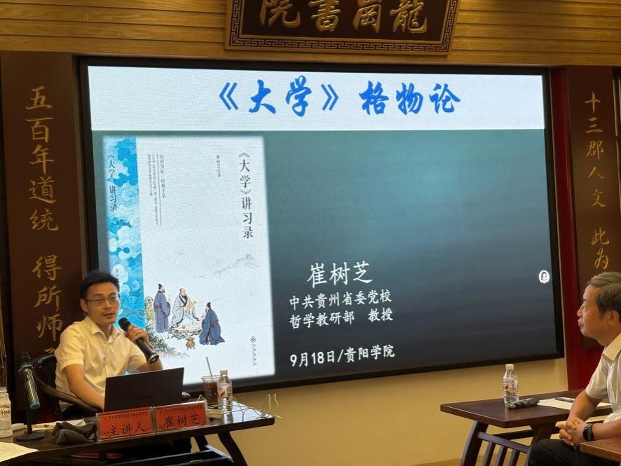 本次讲座的主题为“《大学》格物论”。崔教授从黔中王门孙应鳌的“格物说”引入,再联系自身对“格物”的思考逐步进入主题。