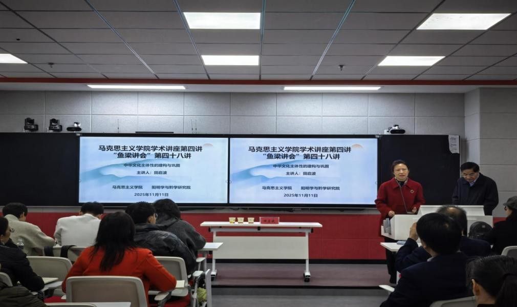 2025年11月11日,由马克思主义学院与阳明学与黔学研究院联合主办的“鱼梁讲会”第四十八讲成功举办。本次讲座特邀深圳大学田启波教授担任主讲,讲座主题为“中华文化主体性的建构与巩固”。研究院师生和马克思主义学院师生参加此次讲座。