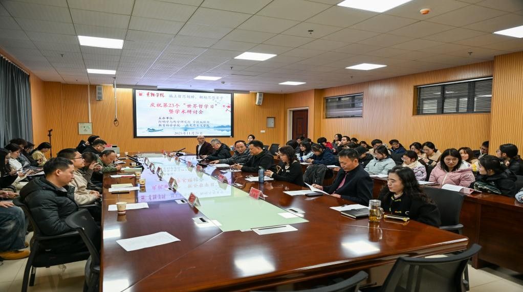 2025年11月20日是第23个“世界哲学日”,为庆祝这一重要节日,贵阳学院举办了学术交流研讨会,本次交流研讨会由阳明学与黔学研究院、学报编辑部、教育科学学院、马克思主义学院联合举办,以“插上哲思翅膀,翱翔思想寰宇”为主题,来自省内多所高校和研究机构的专家学者、哲学专业的本科生和研究生齐聚一堂,共同探讨哲学学科前沿问题。阳明学与黔学研究院副院长任健教授担任本次交流研讨会的学术主持。