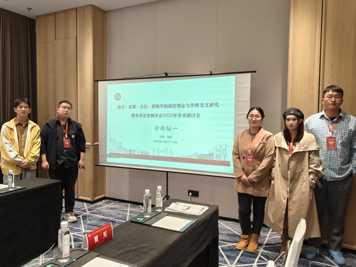2025年10月17日—19日,“语言·思维·文化:逻辑学的前沿理论与学科交叉研究暨贵州省逻辑学会2025年学术研讨会”在贵阳举办。我院方佳、吴亚琳、李朝扬、张瀚文、崔福星五名研究生受邀参会,在研究生分论坛围绕逻辑与哲学、人工智能等交叉领域做了交流发言。