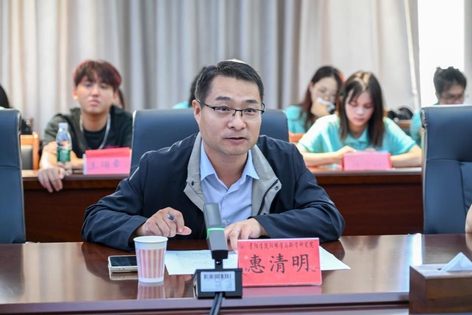 随后,暨南大学学生工作部副部长惠清明做了分享发言。惠老师表示,本次研学与交流的经历收获颇丰,本次活动使来自金融、传媒、外国语、法学等不同专业的同学在实践中深刻体验了阳明文化,暨南大学虽面向港澳台招生办学,但其在办学理念上与贵阳学院不谋而合,希望未来可以有更多合作交流的机会。