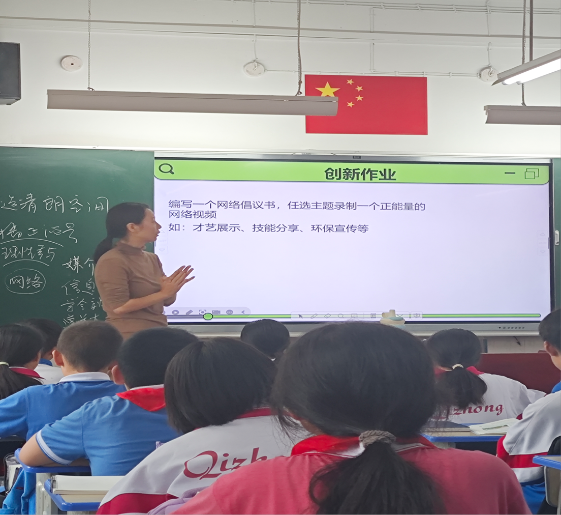 涂老师在课堂教学中还设置了丰富的互动环节,同学们积极分享自己的网络使用经历,并就“如何做一名负责任的数字公民”展开热烈讨论。涂老师在此基础上布置了实践性作业,鼓励学生设计一份“家庭网络使用公约”或创作一份“清朗网络·从我做起”宣传视频,将课堂所学转化为实际行动。