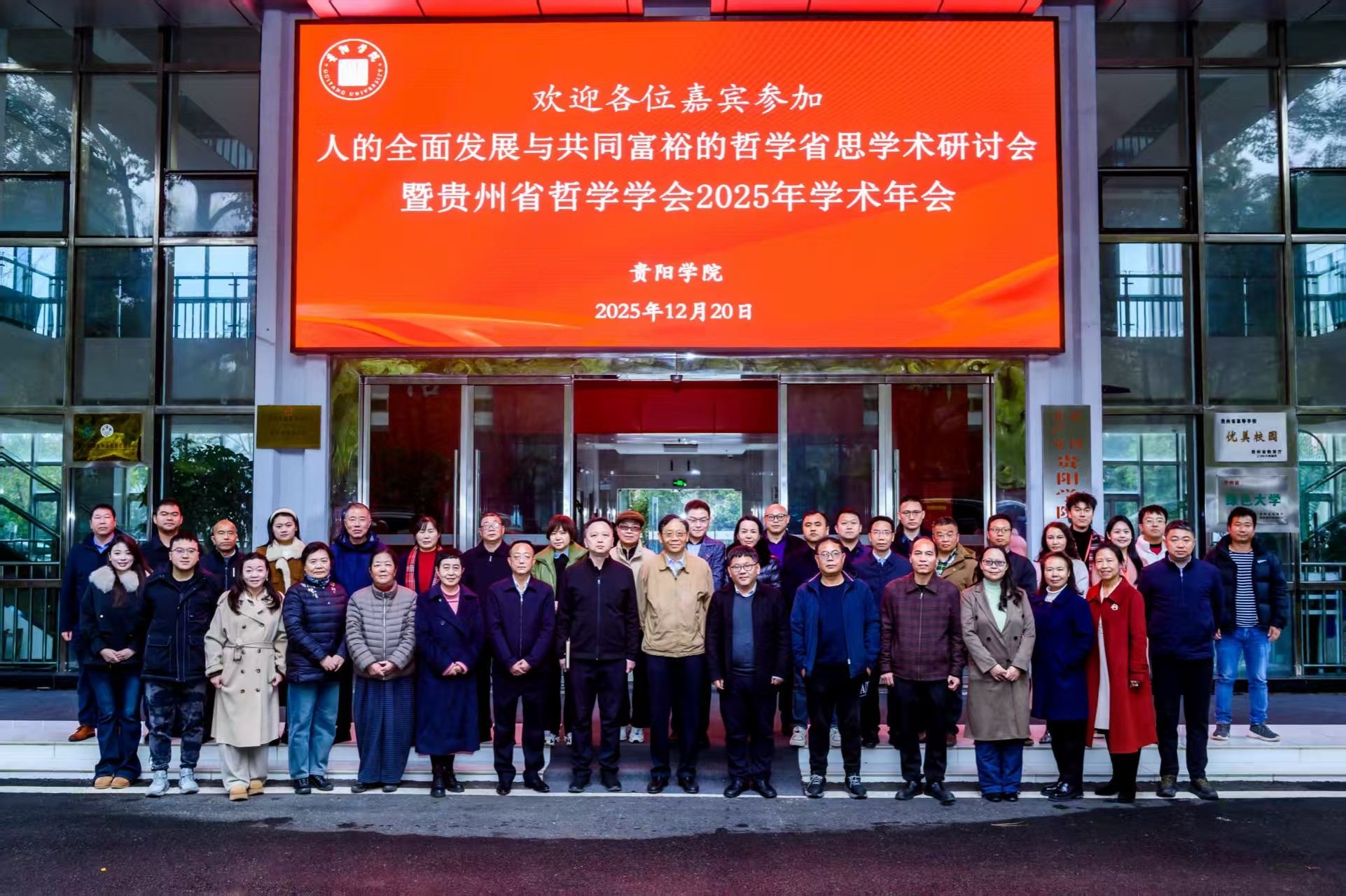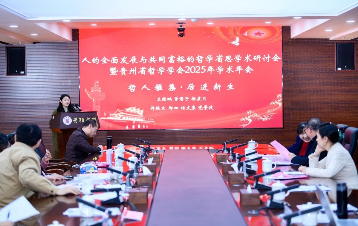 12月20日,由贵州省哲学学会主办、贵阳学院承办、贵阳学院马克思主义学院和阳明学与黔学研究院协办的“人的全面发展与共同富裕的哲学省思学术研讨会暨贵州省哲学学会2025年学术年会”在贵阳学院九思楼召开。来自全省的知名专家学者、研究生代表80多人齐聚贵阳,围绕“人的全面发展与共同富裕的哲学省思”这一会议主题展开交流研讨。